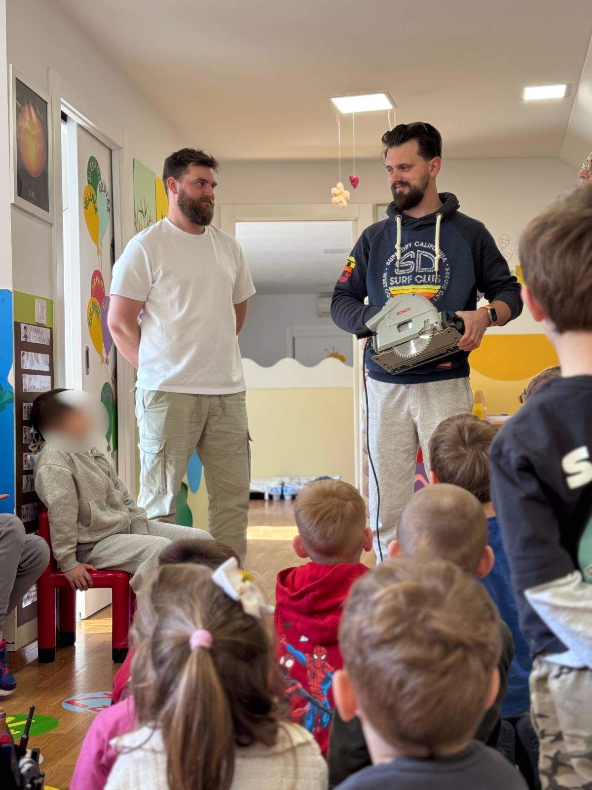 Povodom svetkovine sv. Josipa posjetili su nas vrijedni stolari i približili nam svoj važan i zanimljiv posao. Djeca su s velikim zanimanjem promatrala njihov alat, slušala objašnjenja i učila kako nastaju drveni predmeti koje svakodnevno koristimo. Stolari su strpljivo odgovarali na sva pitanja, a najviše oduševljenja izazvala je prilika da mališani i sami isprobaju neke jednostavne aktivnosti. Kroz igru i druženje naučili smo koliko je trud, vještina i ljubav potrebno uložiti u ovaj plemeniti zanati.