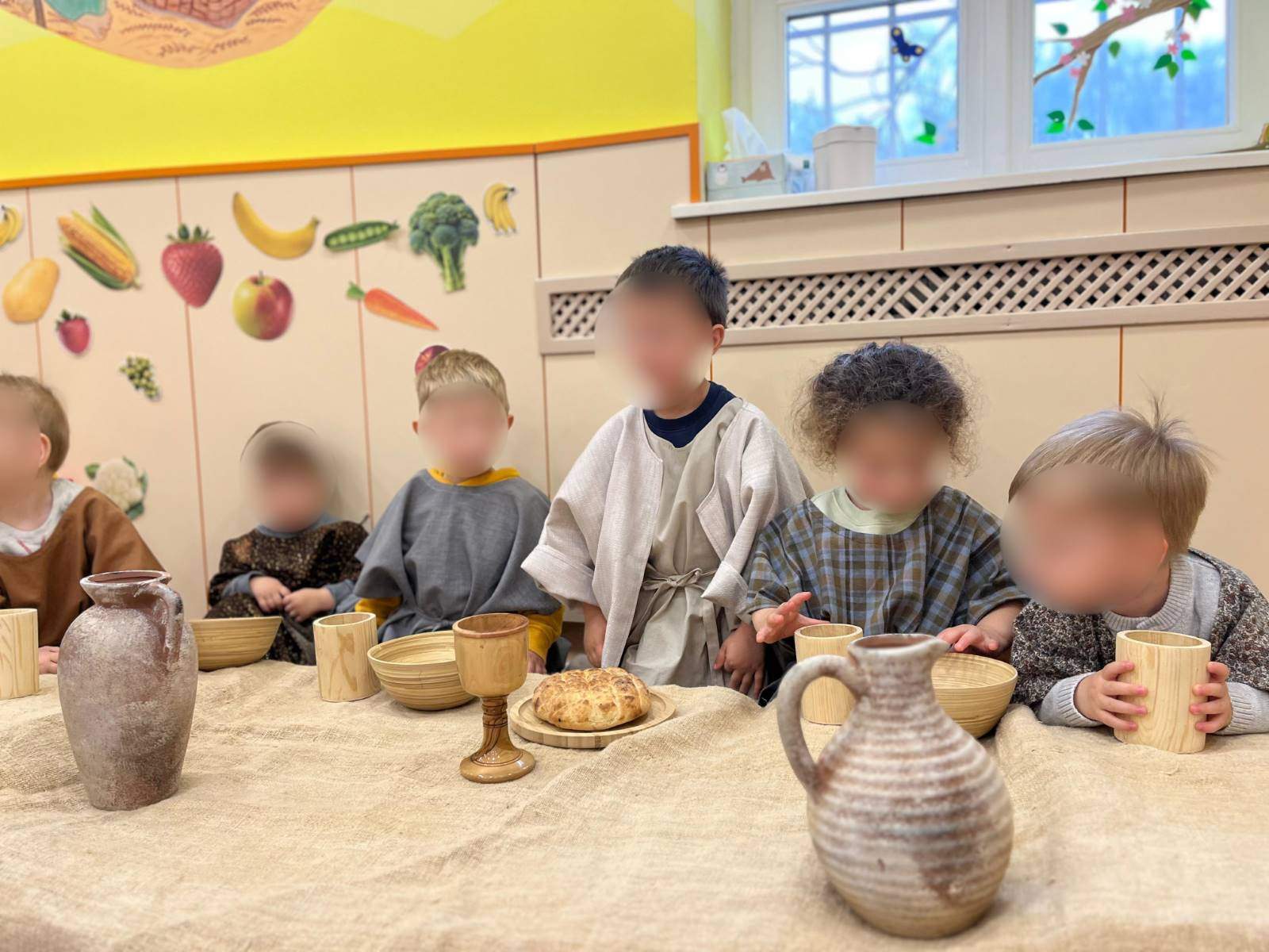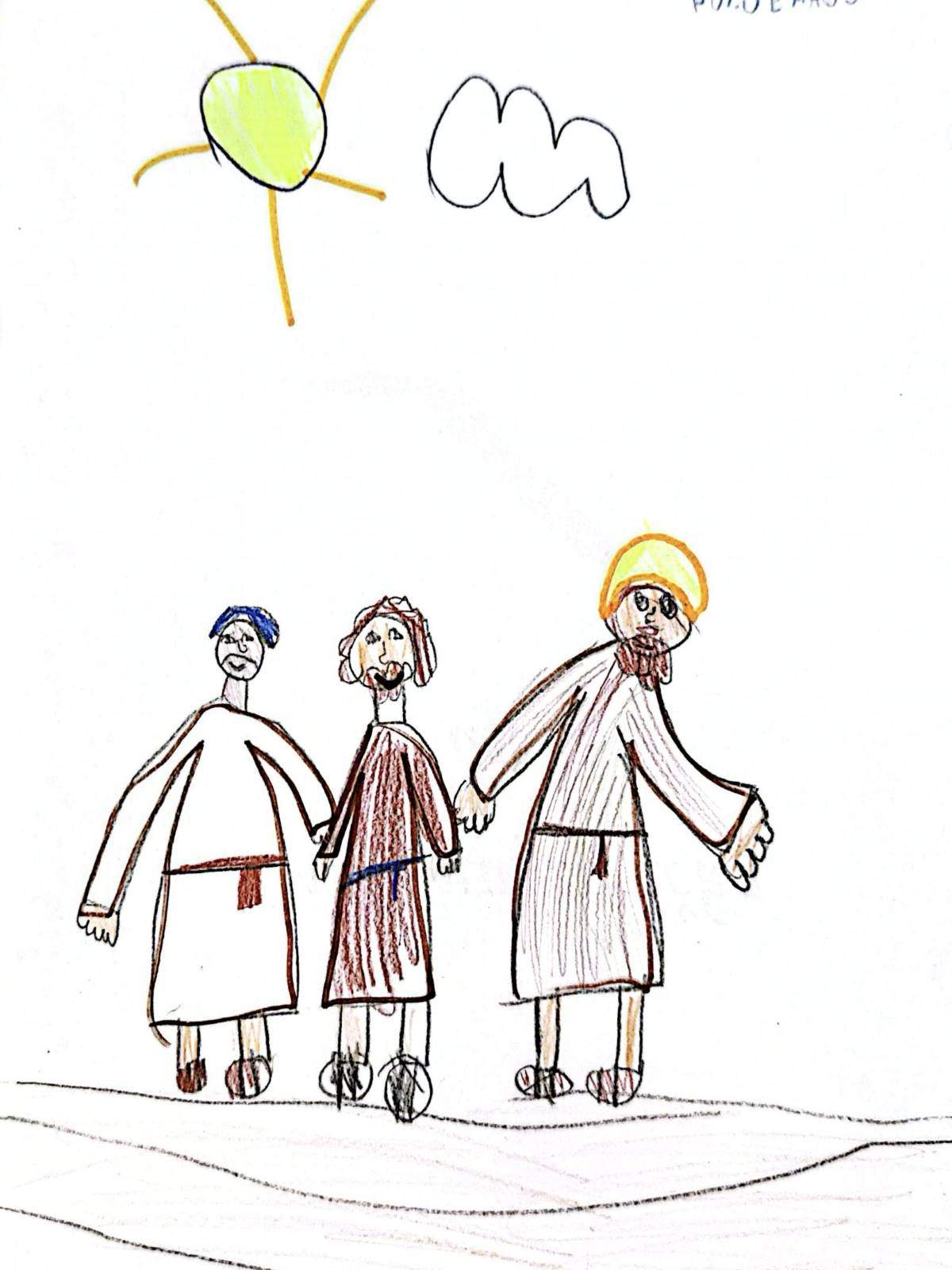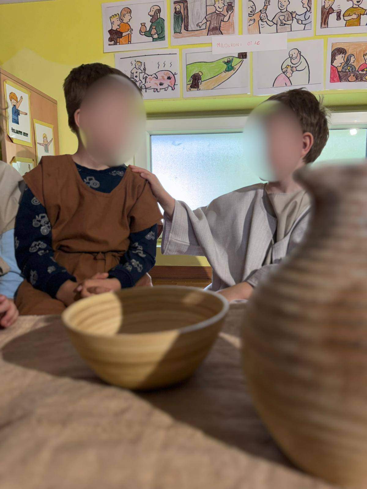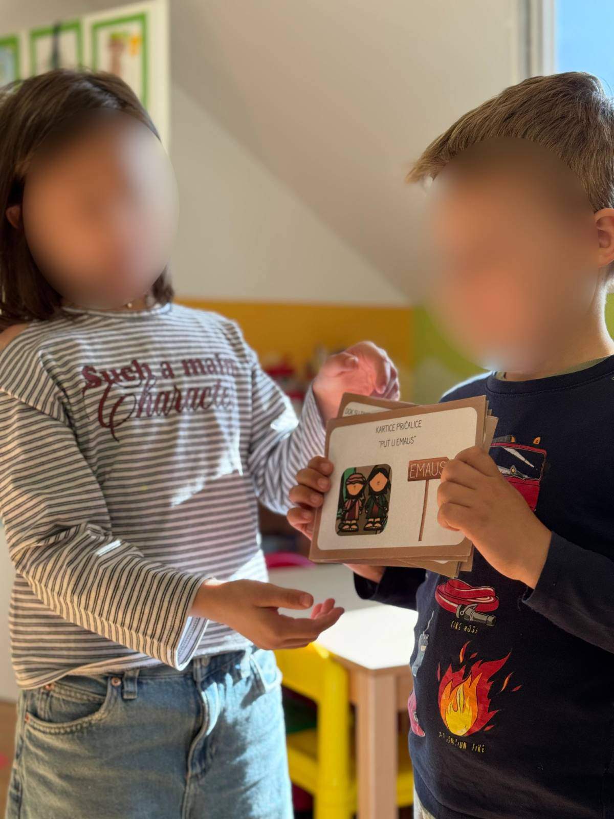 CILJ: Upoznati djecu s događajem susreta uskrslog Isusa s učenicima na putu u Emaus te razvijati razumijevanje osjećaja i zajedništva.