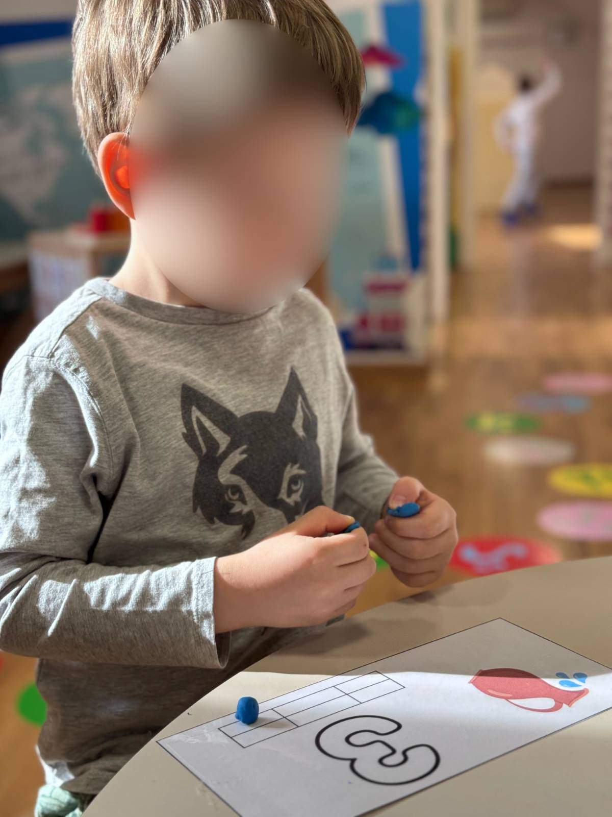 - Poticati razvoj pozitivne slike o sebi i samopouzdanja putem individualne aktivnosti i samostalnosti osobito kroz podršku djetetu da ustraje u radu i povratna informacija (aktivnost pincetnog hvata u stolno- manipulativnim aktivnostima i aktivnostima u centru liječnika)