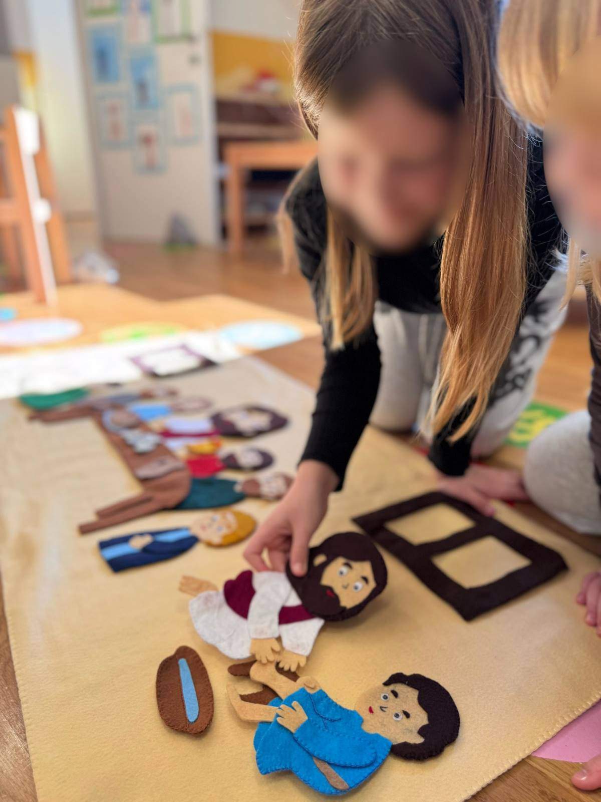 - Razvijati logičko mišljenje i vizualnu percepciju aktivnosti slaganja puzzli s motivima puta u Emaus.
