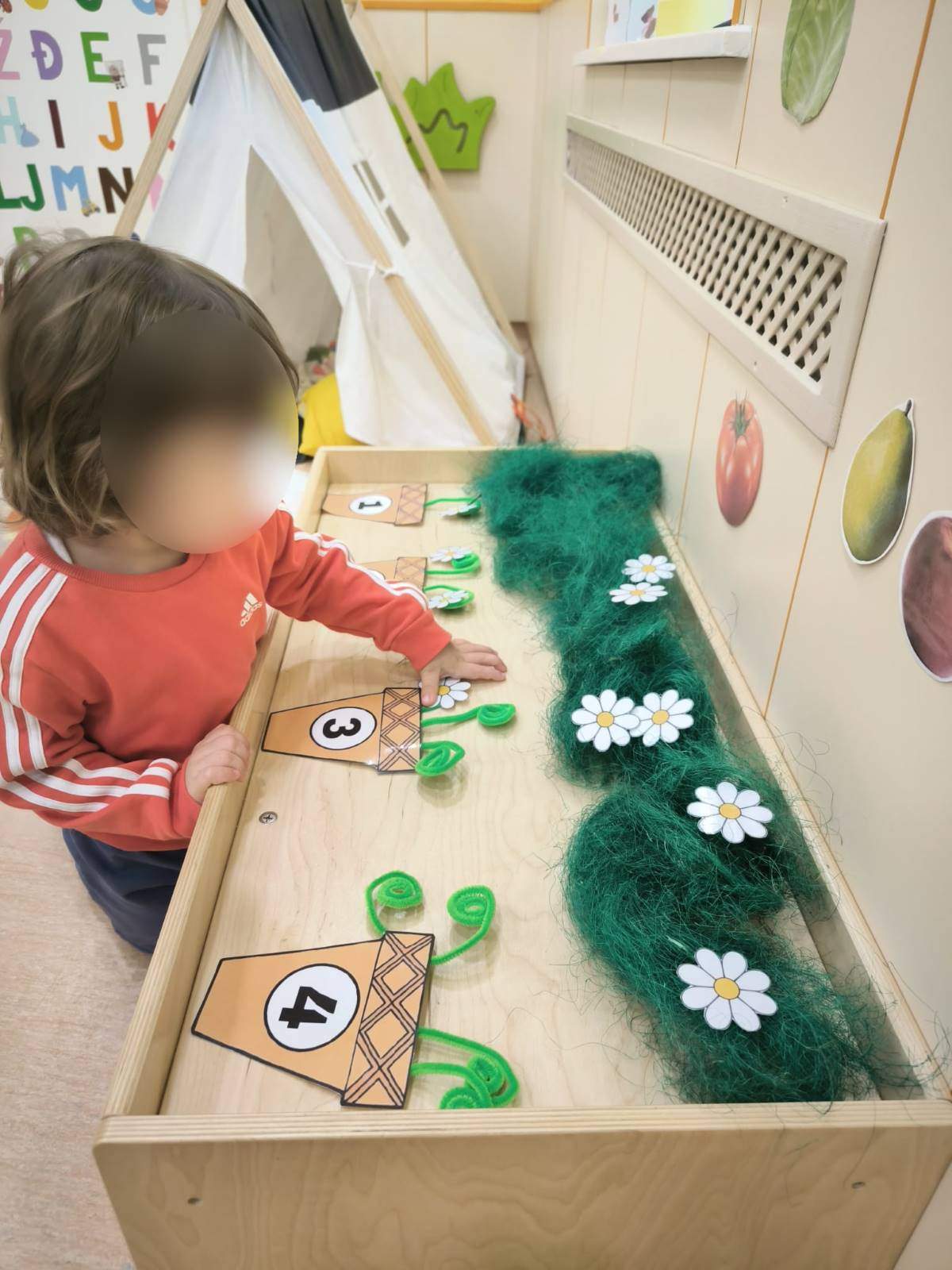 - Poticati matematičko mišljenje i logičko zaključivanje matematičkom slagalicom razvrstavanja i stavljanja sjemena u teglice prema zadanom broju.
