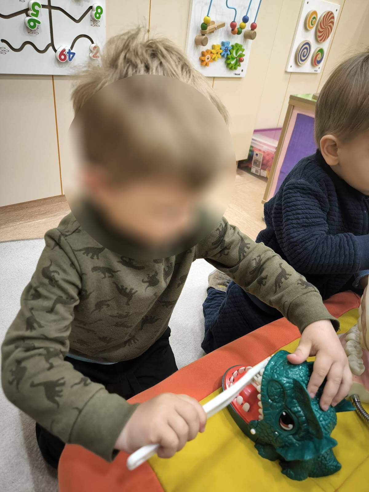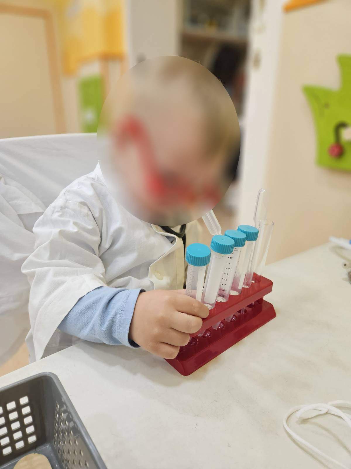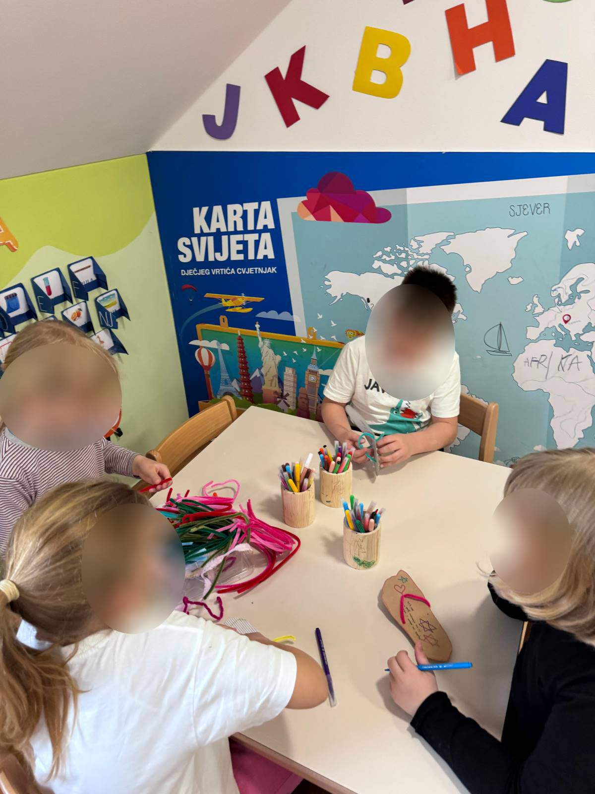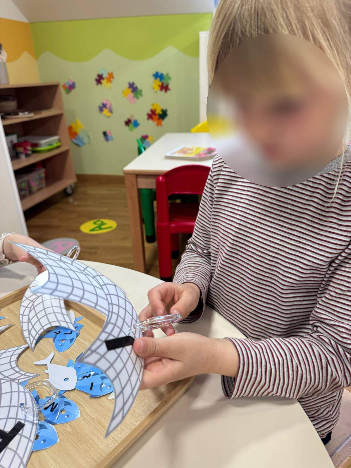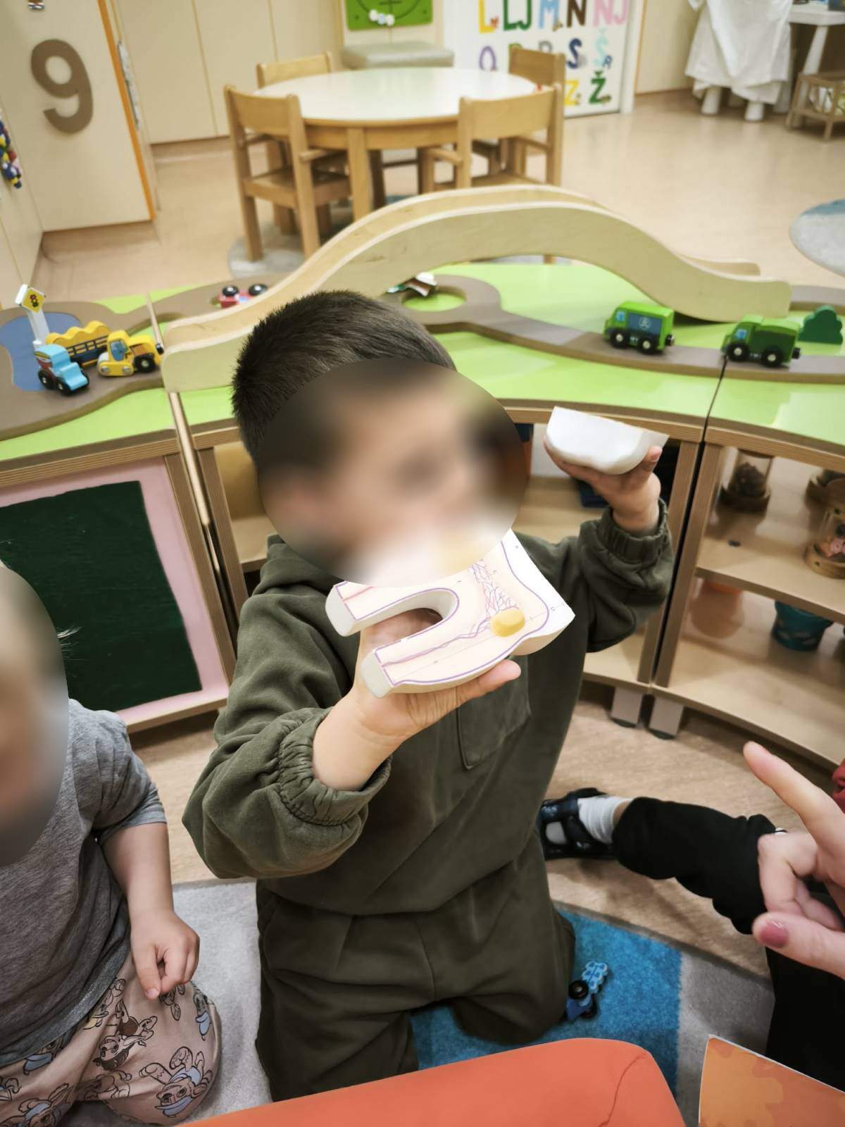 - Poticati razvoj pozitivne slike o sebi i samopouzdanja putem individualne aktivnosti i samostalnosti osobito kroz podršku djetetu da ustraje u radu i povratna informacija (aktivnost pincetnog hvata u stolno- manipulativnim aktivnostima i aktivnostima u centru liječnika)