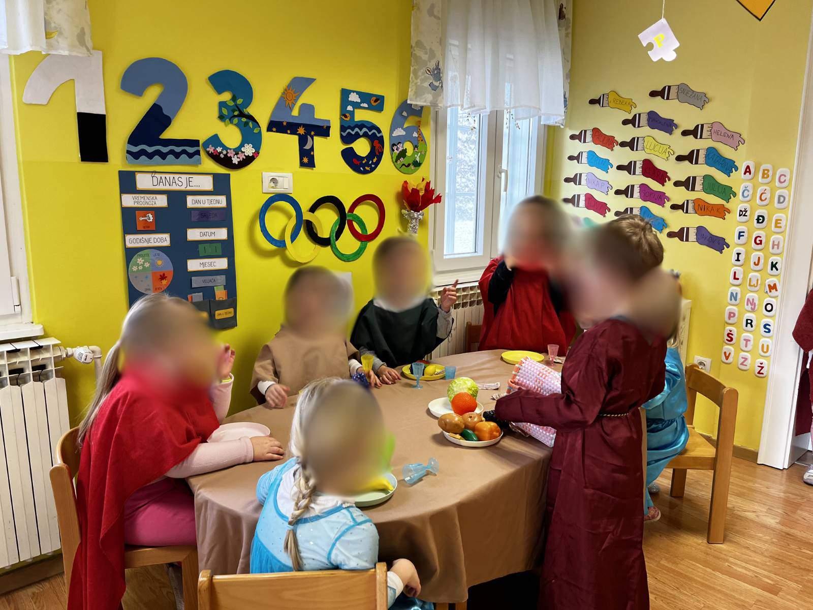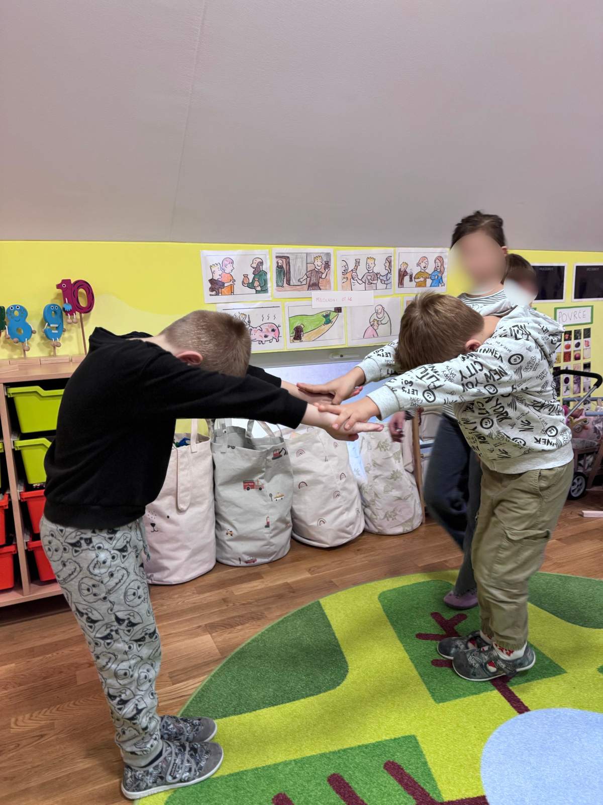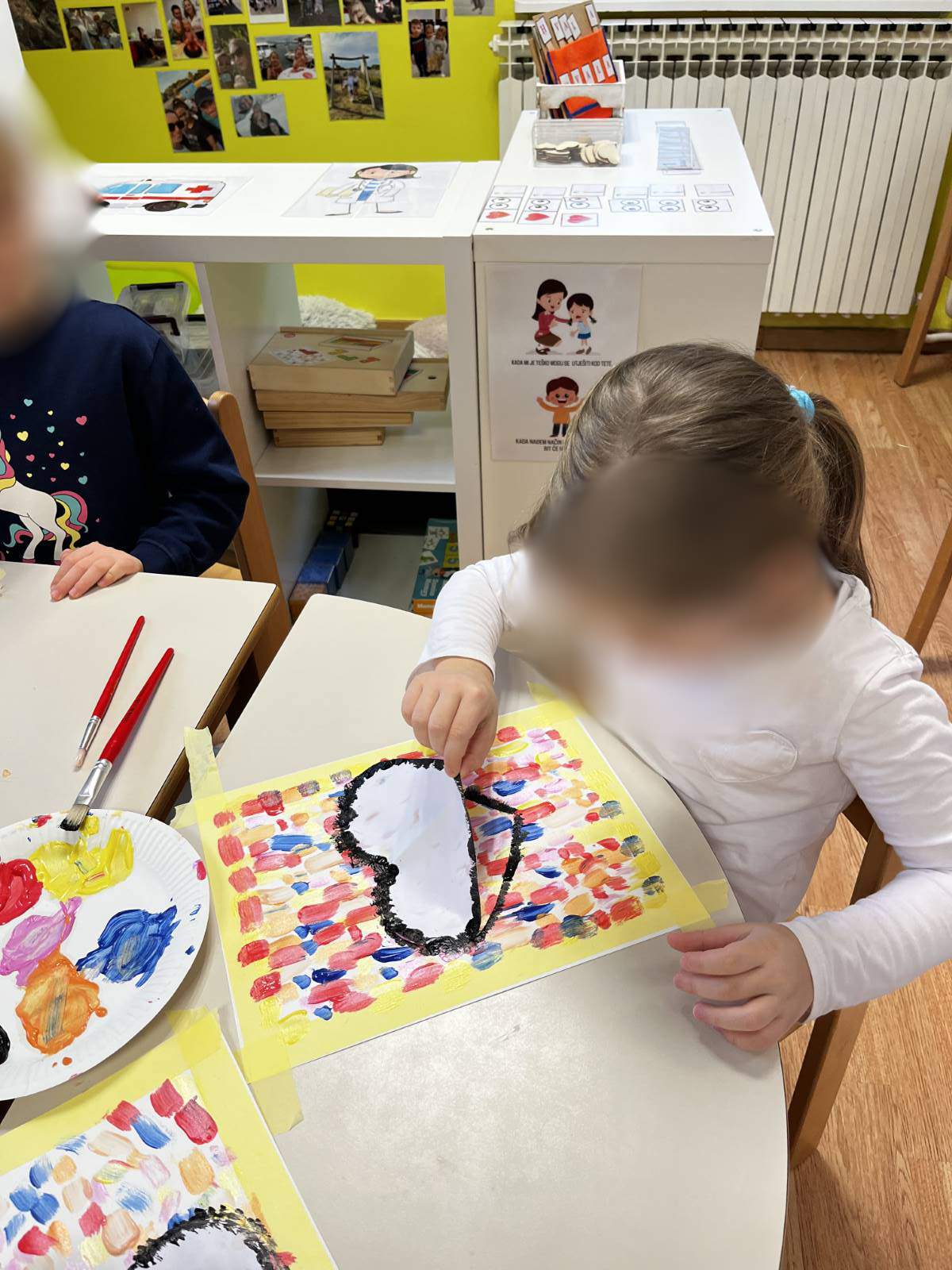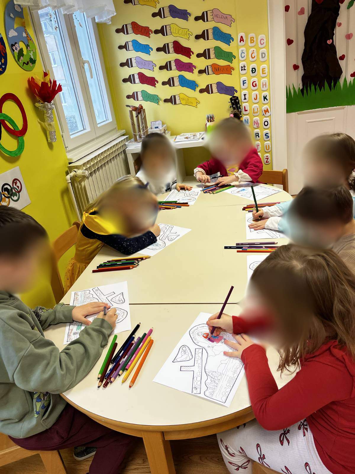 - Poticati razvoj socijalnih vještina poput suradnje i osjećaja zajedništva osobito u likovnom centru te aktivnosti igara s pravilima