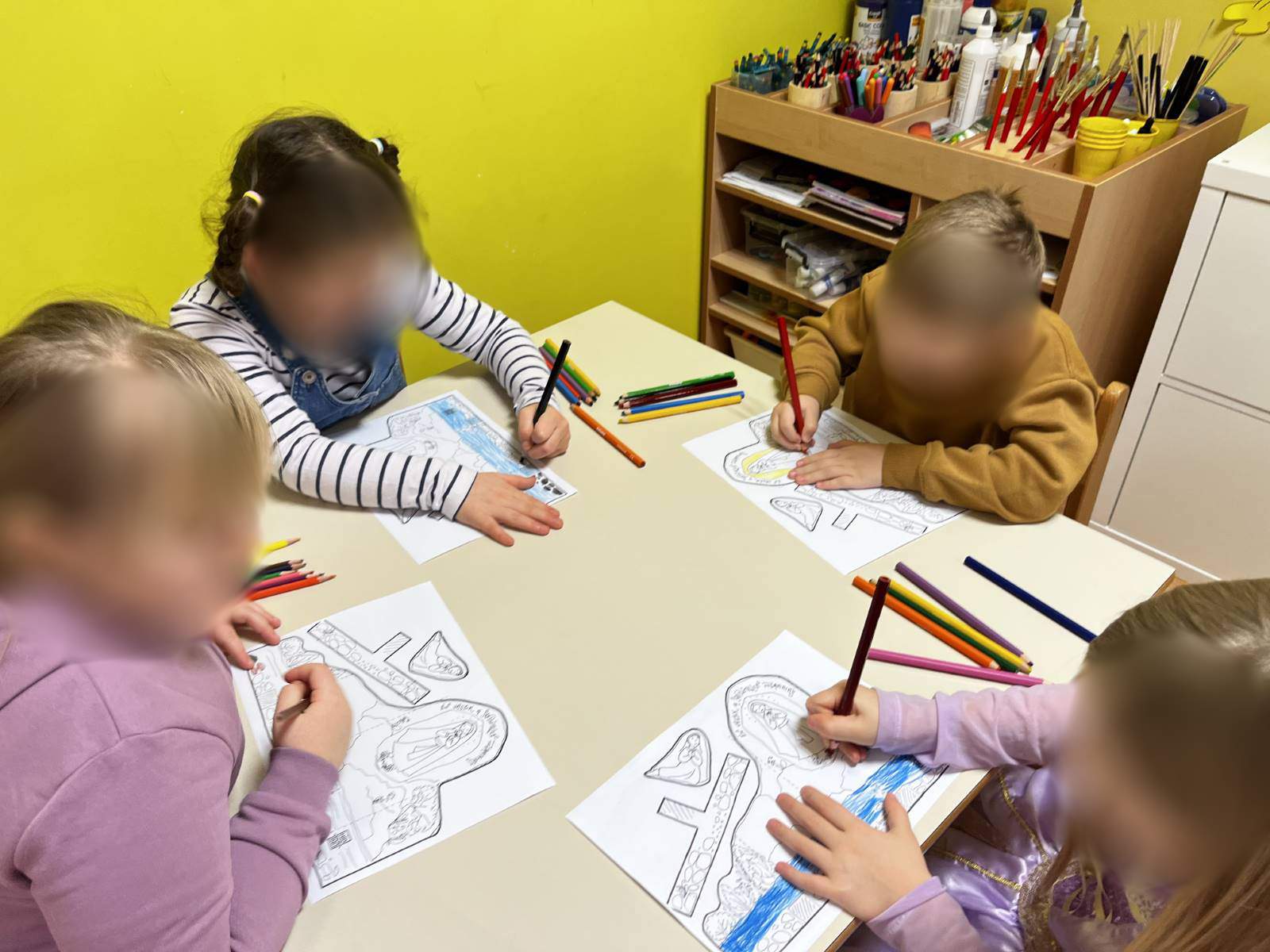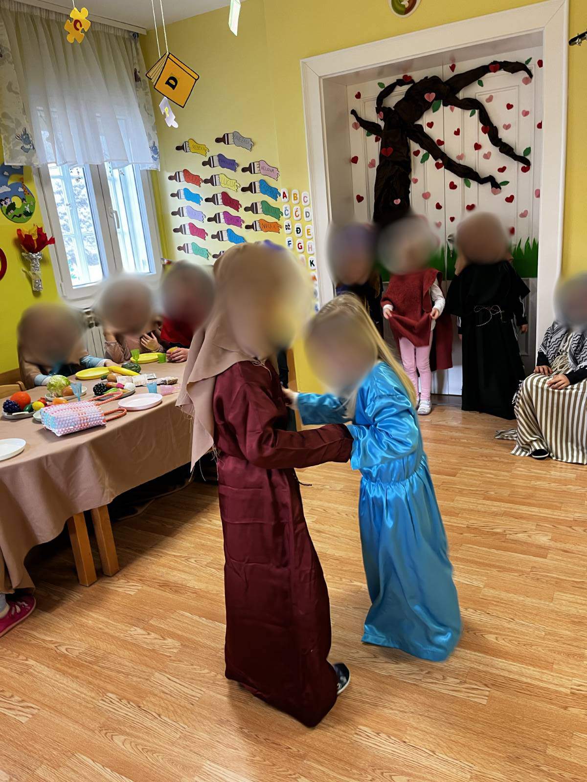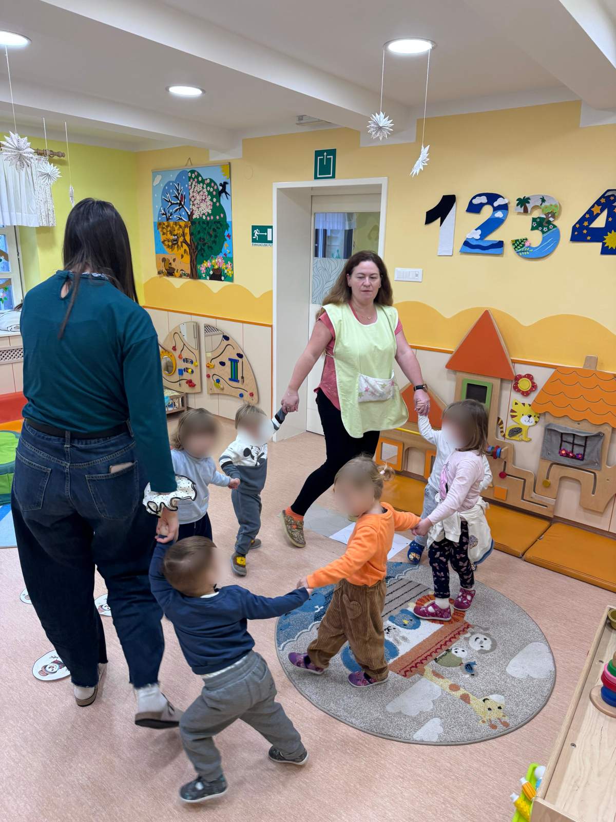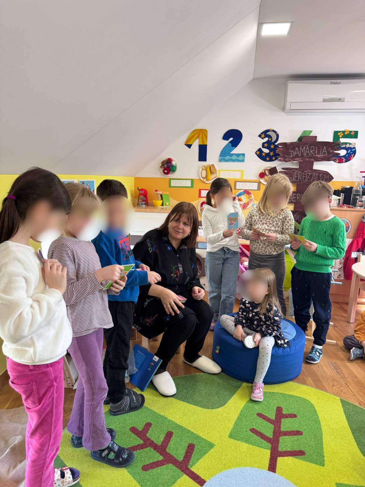 - Poticati razvoj socijalnih vještina poput suradnje i osjećaja zajedništva osobito u likovnom centru te aktivnosti igara s pravilima