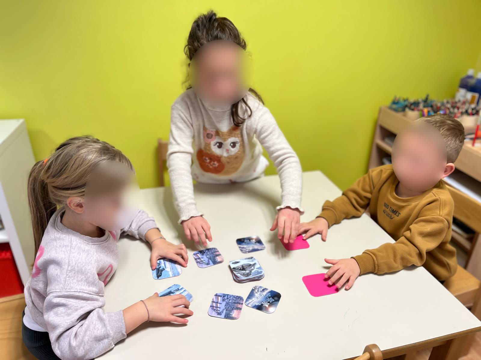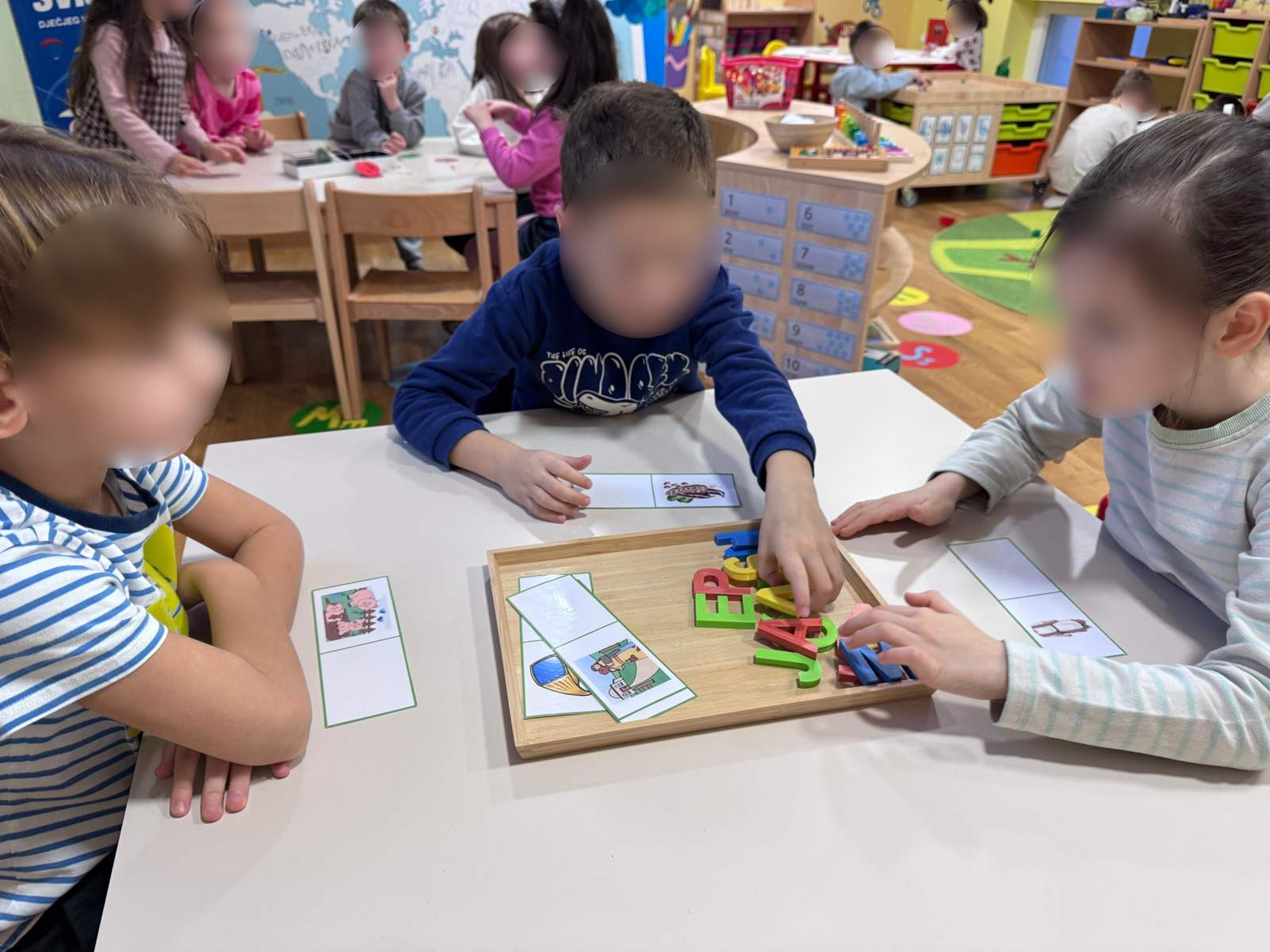 - Razvoj pamćenja i koncentracije putem aktivnosti memory, slaganje kamenčića pincetom po predlošku, slaganje matematičke slagalice te slaganje slova na slovo