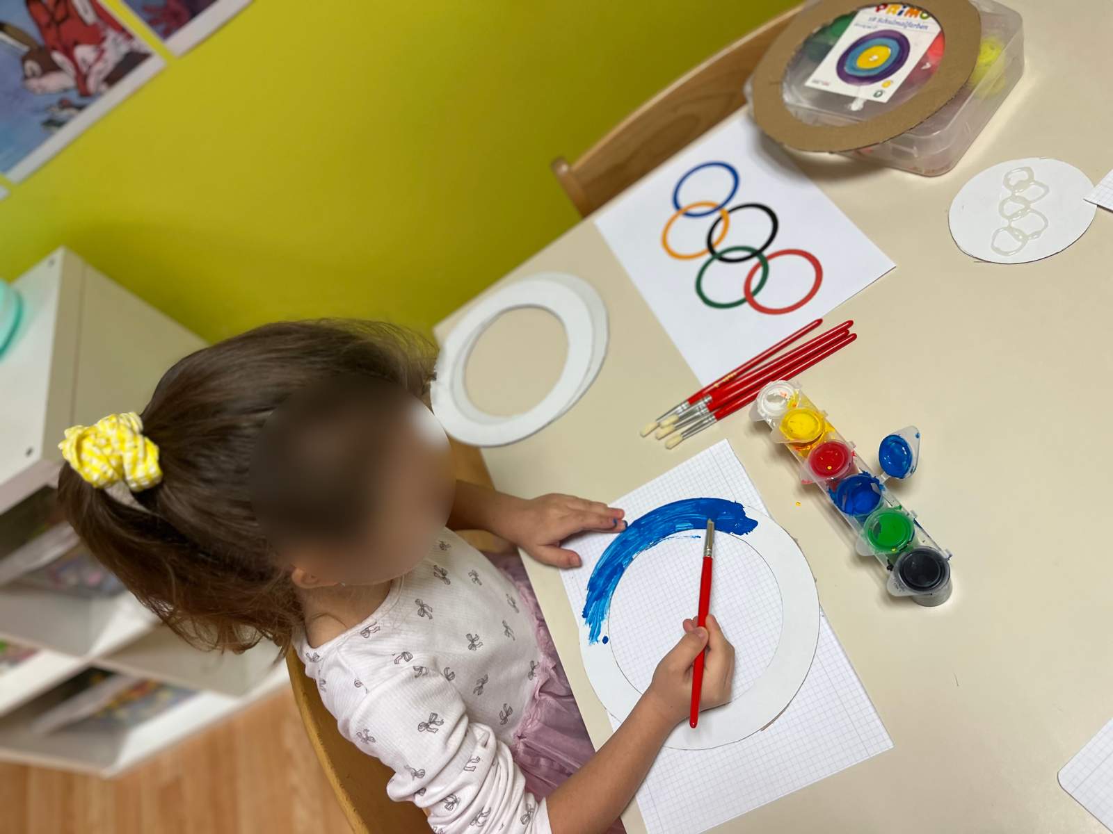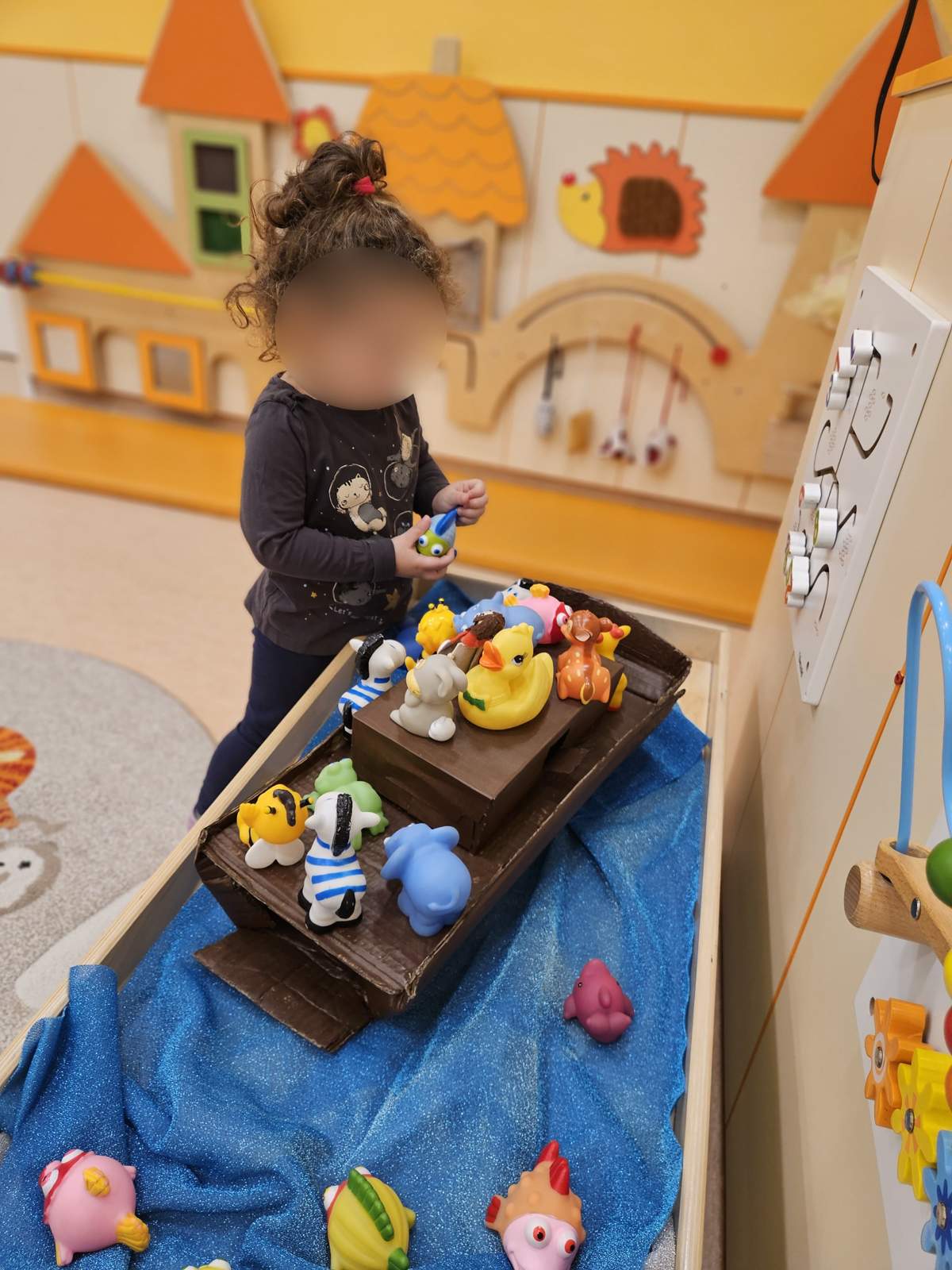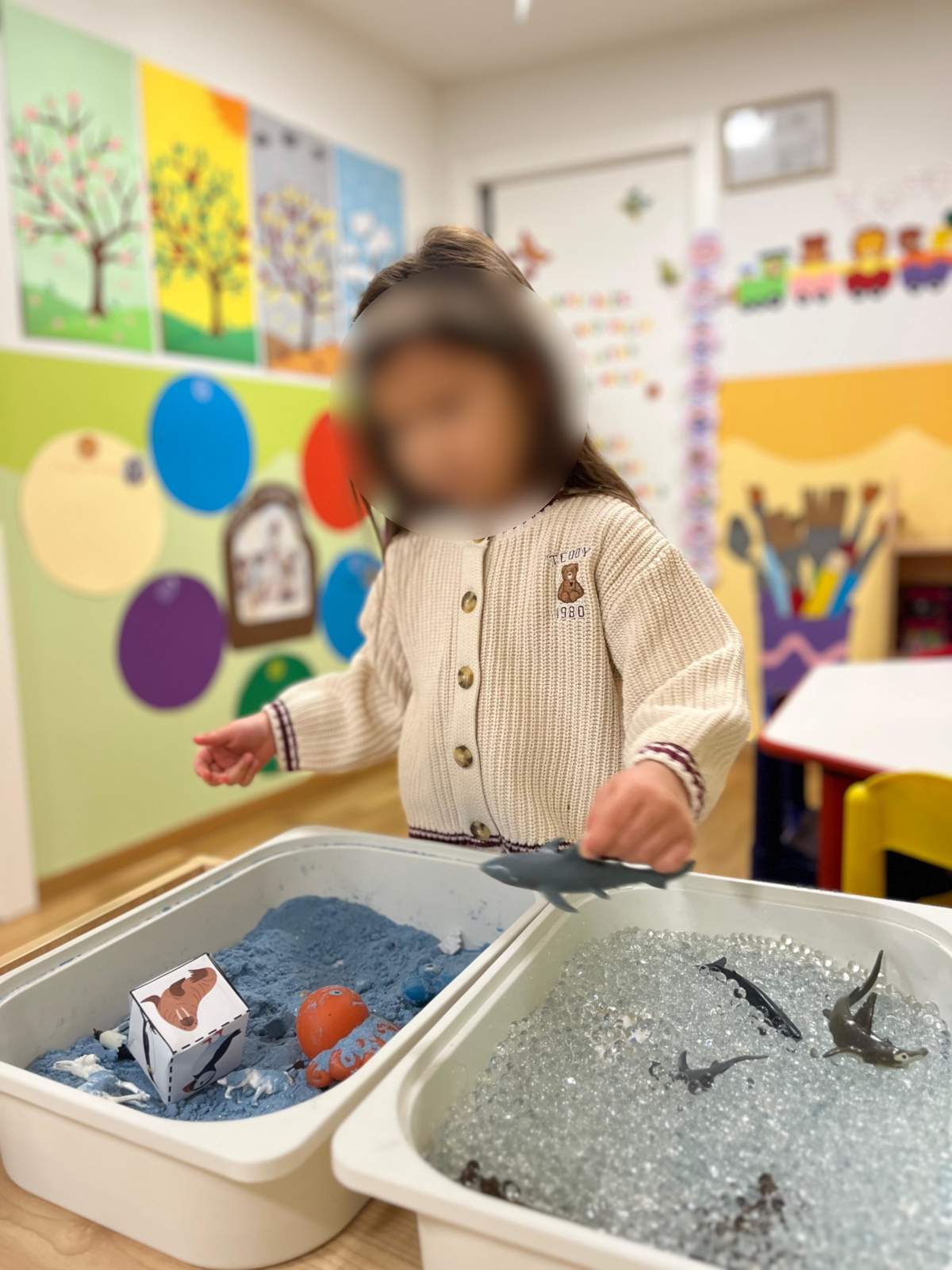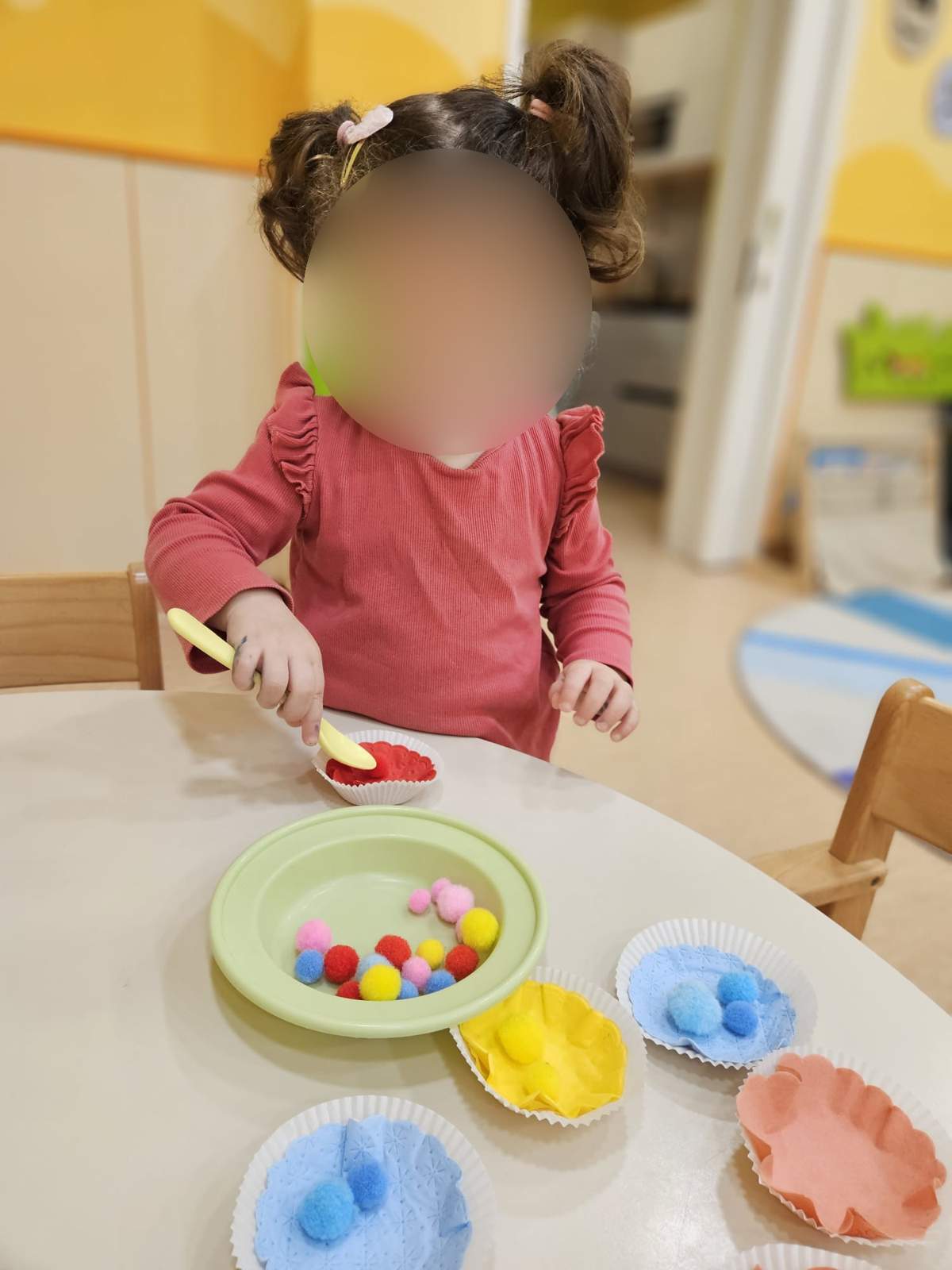 - Poticati razvoj pozitivne slike o sebi i samopouzdanja putem individualne aktivnosti i samostalnosti osobito kroz podršku djetetu da ustraje u radu i povratna informacija (aktivnost pincetnog hvata u usvajanju boja, stolno- manipulativna aktivnost šivalica, aktivnosti u centru liječnika)