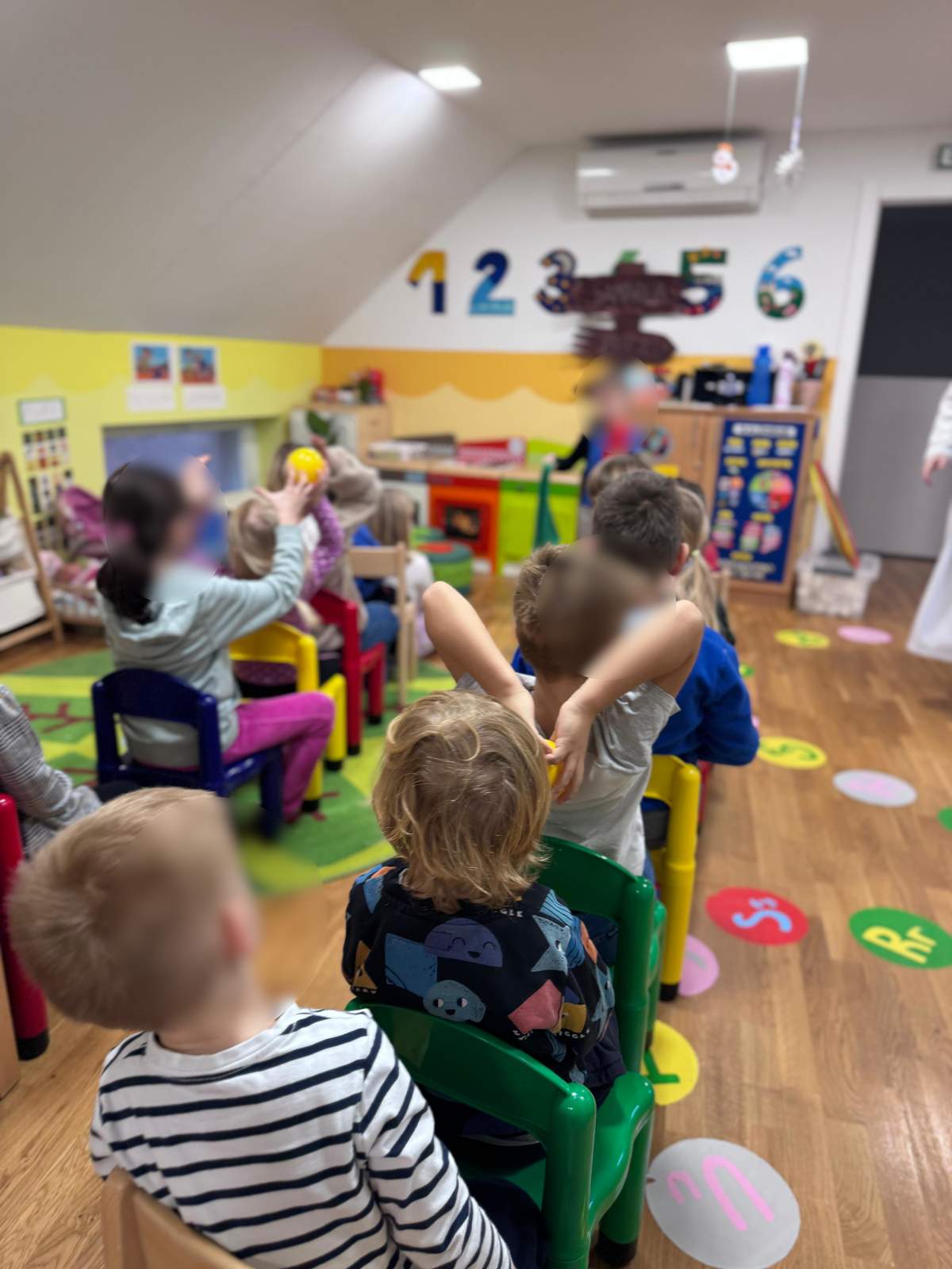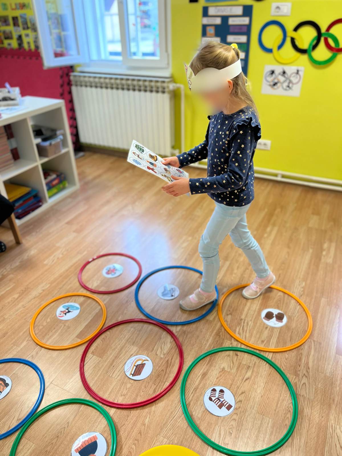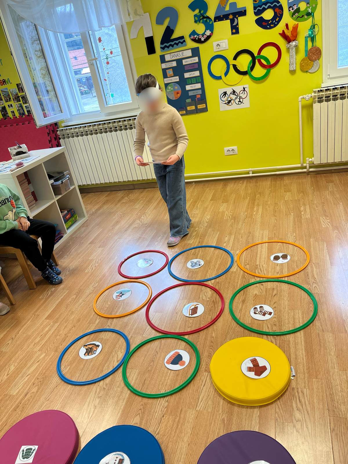 - Razvoj kombinacije i preciznosti pokreta (aktivnost ubacivanja loptica u kutiju, bacanje obruča na štap, te aktivnost pravilnog skakanje po predlošku)