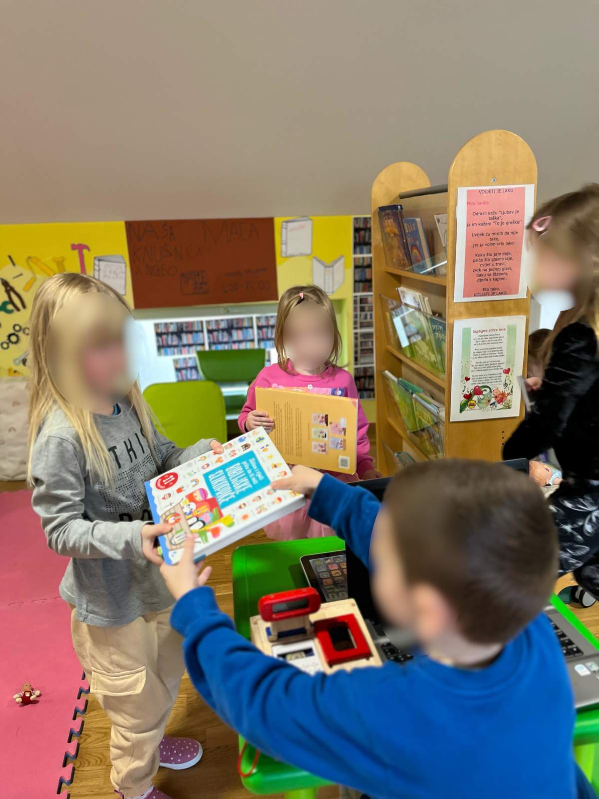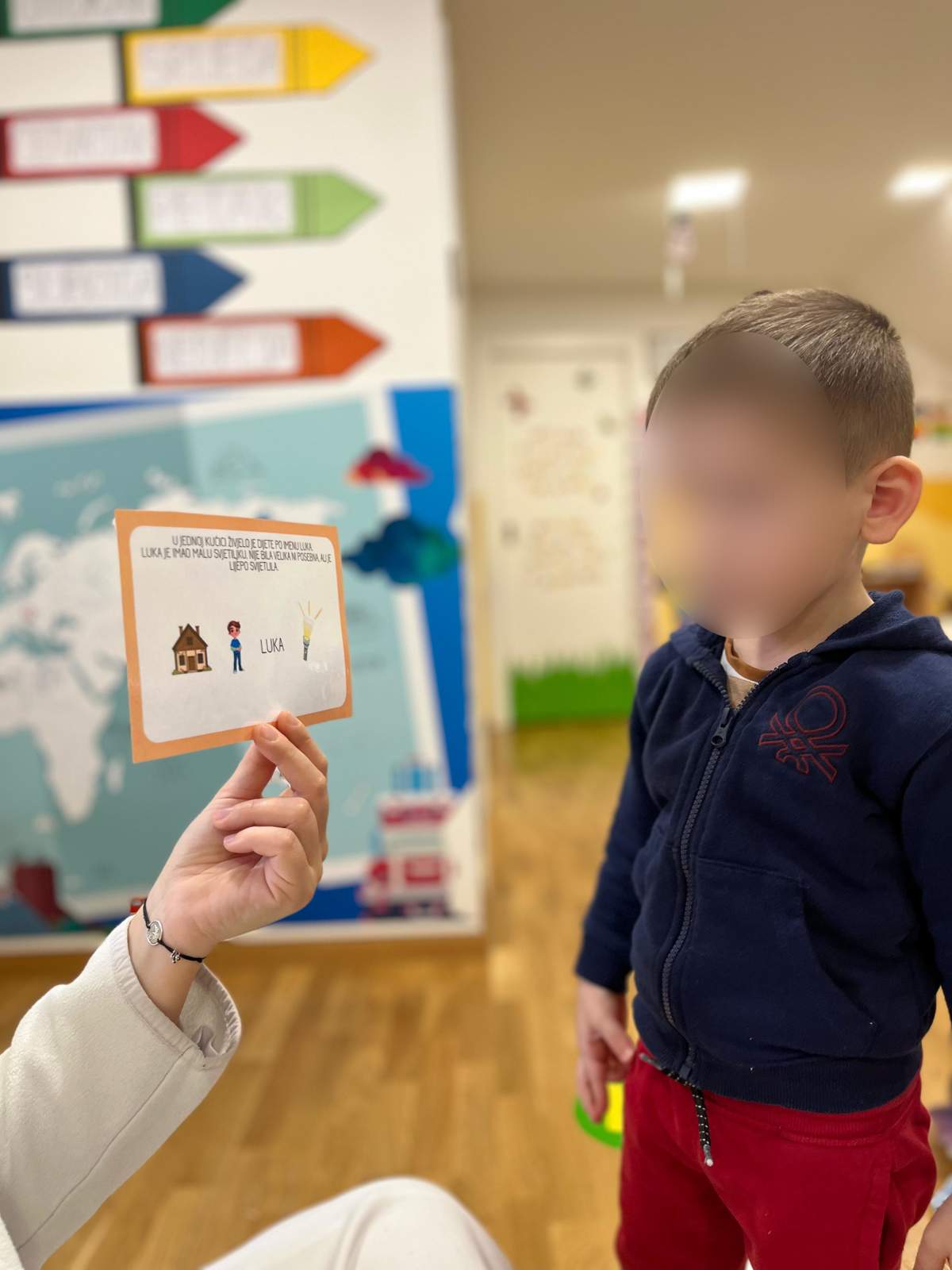 - Poticanje razvoja verbalnog izražavanja misli, osjećaja i potreba prilikom sudjelovanja u aktivnostima „Pričaj mi priču“ te aktivnostima pridruživanja slova