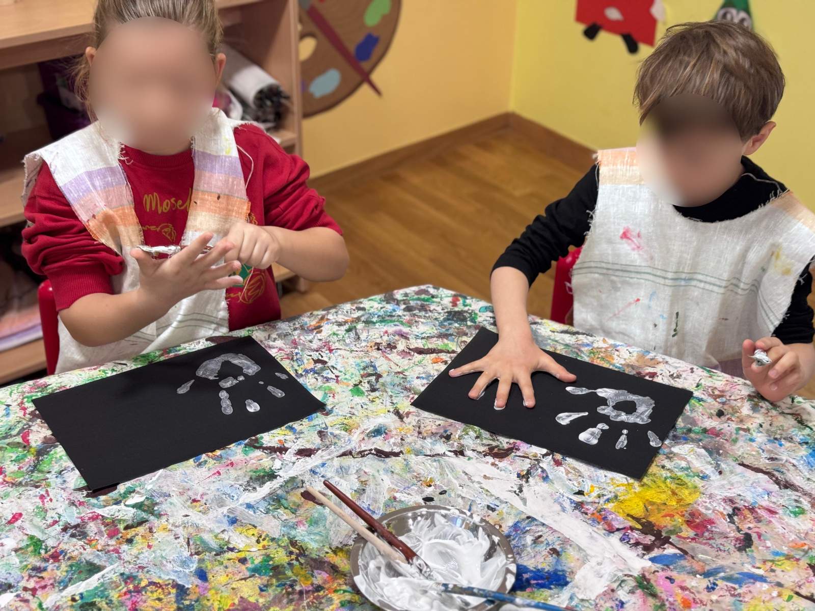 - Kroz igru bojama i materijalima razvijati finu motoriku šake i prstiju.