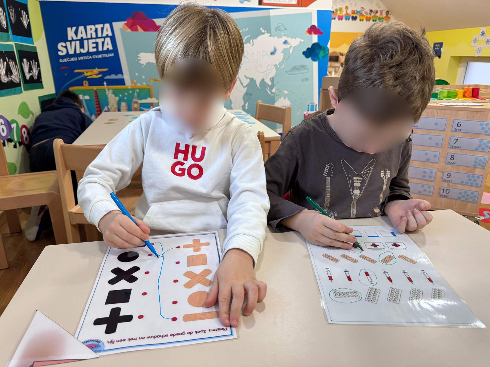- Razvoj pamćenja i koncentracije putem aktivnosti igre oduzimanja, koncentracije u aktivnosti memory te slaganje pincetom na predlošku