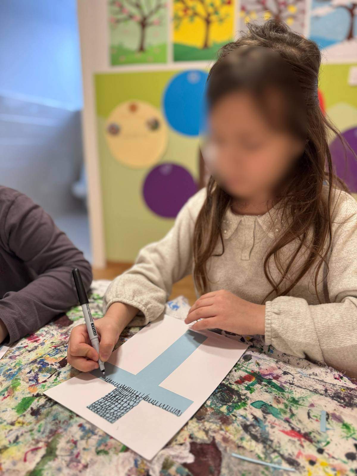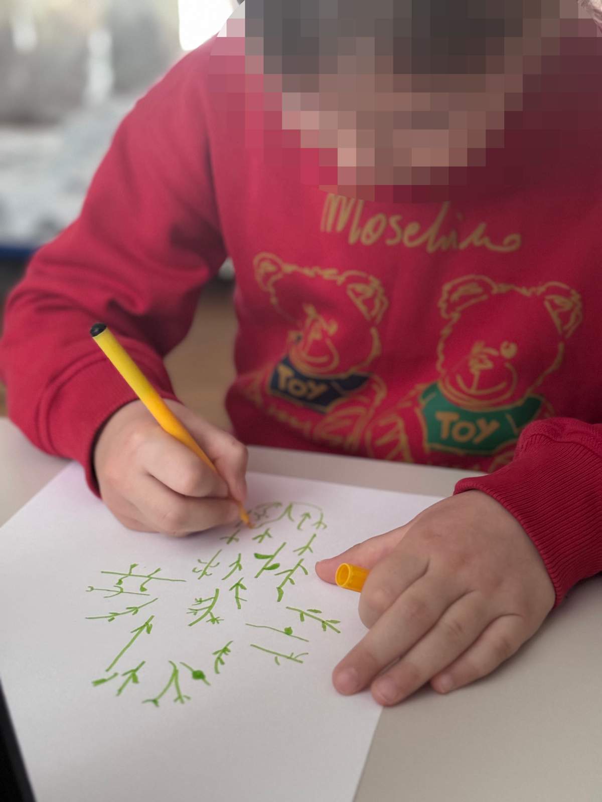 - Poticati razvoj okulomotorike (stolno-manipulativne aktivnosti) i grafomotorike u likovnim aktivnostima crtanja flomasterom