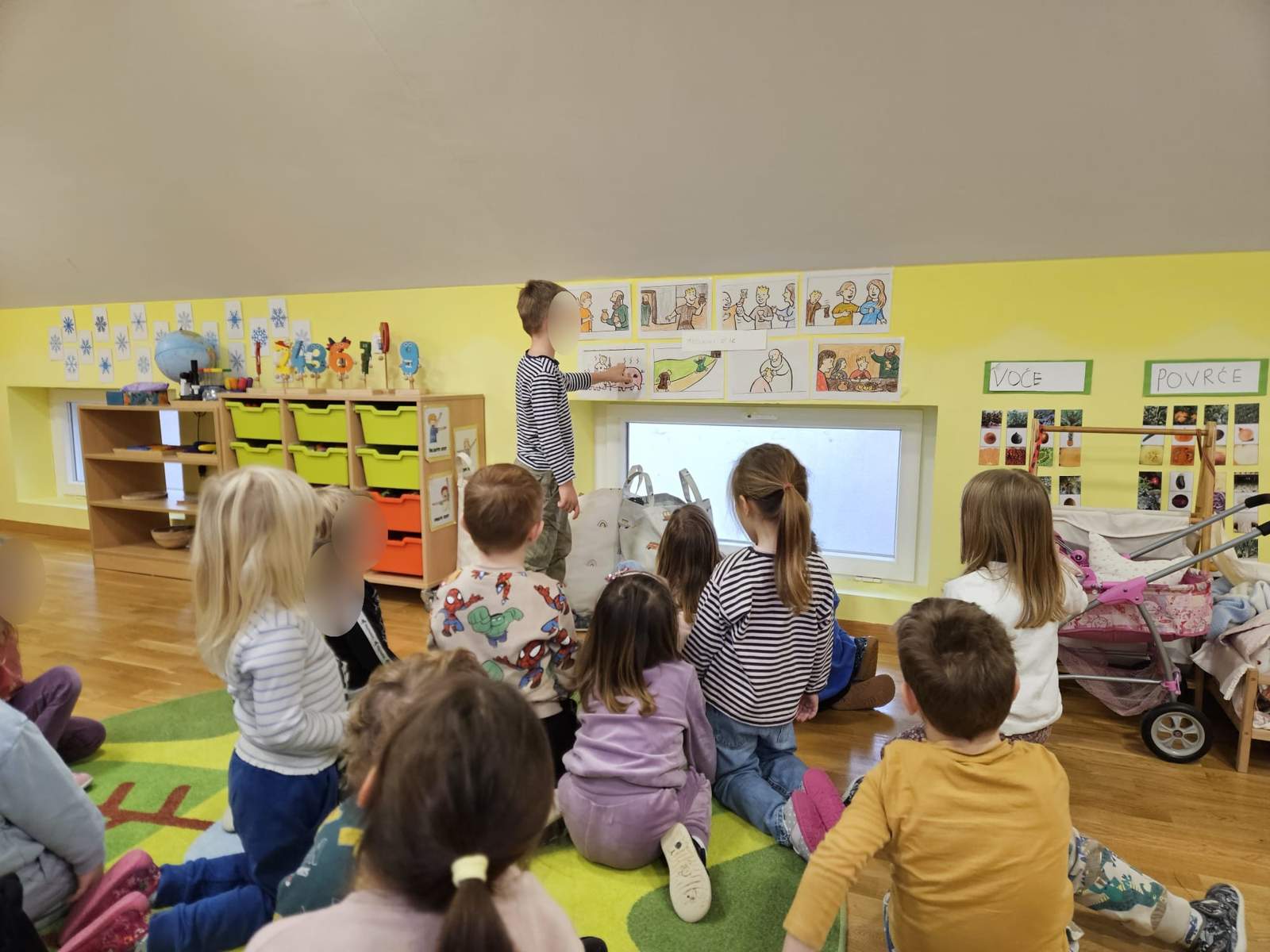 - Poticanje djece na govorno stvaralaštvo (aktivnost čitanja slikovnice, te aktivnost pridruživanja slova određenom slovu)
