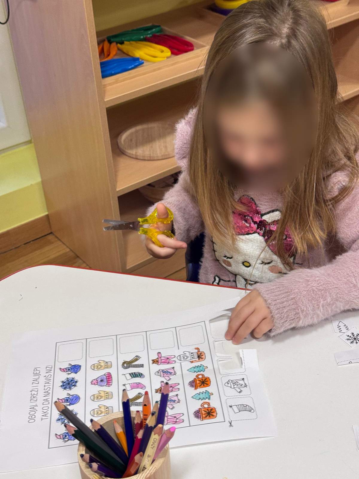 - poticanje fine motorike prilikom izrezivanja i trganja papira.